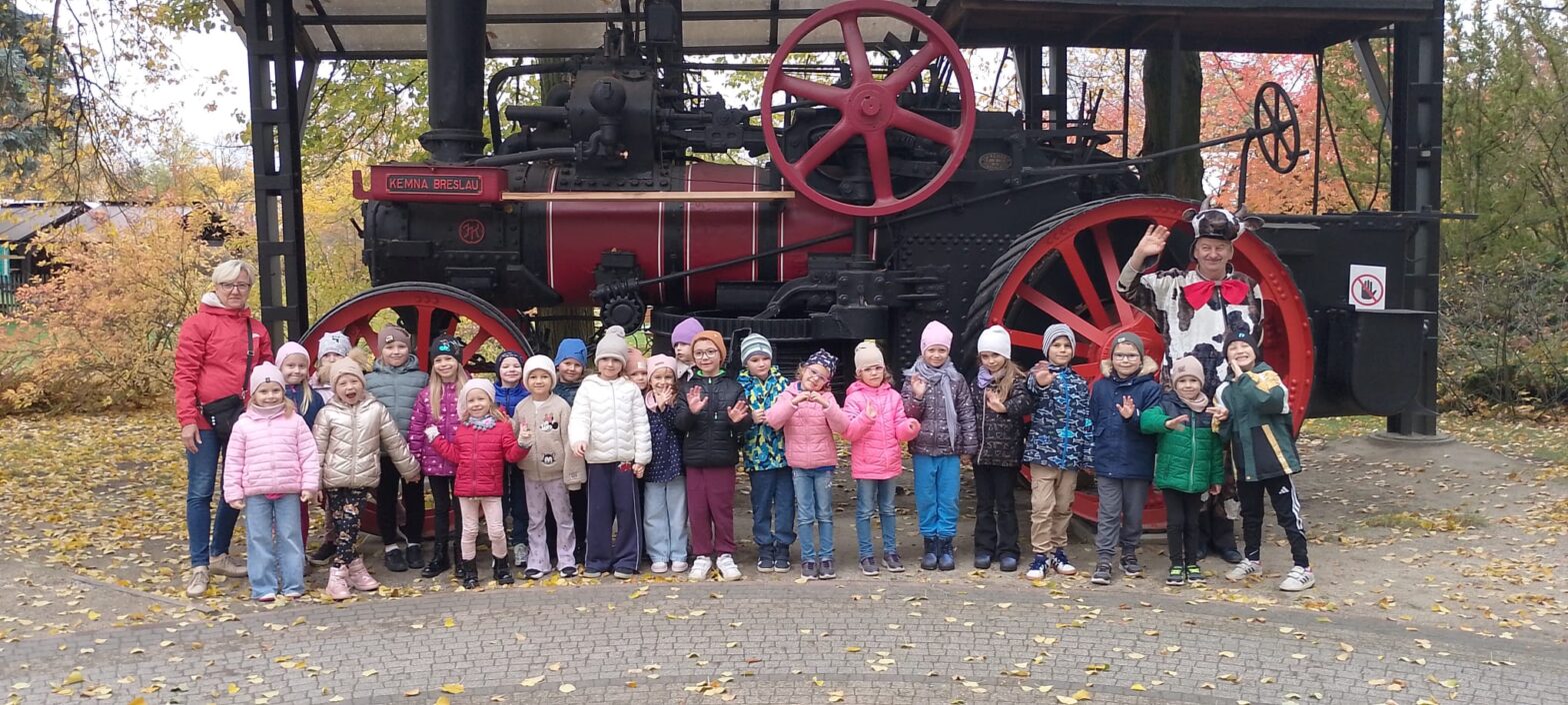 W piątek, 24 października, dzieci z dwóch najstarszych grup naszego przedszkola – Pszczółki i Stokrotki – wybrały się na wyjątkową wycieczkę do Muzeum Narodowego Rolnictwa i Przemysłu Rolno-Spożywczego w Szreniawie. Wyjazd odbył się w ramach realizacji projektu „Rozwój edukacji przedszkolnej w Gminie Miejskiej Słupca”, którego celem jest wspieranie rozwoju i integracji dzieci poprzez zwiększenie dostępu do wysokiej jakości usług edukacyjnych w placówkach przedszkolnych.Podczas wizyty w muzeum przedszkolaki wzięły udział w interesujących zajęciach pt. „Ene due Rabe” oraz „Spacer z Krówką”. Dzieci z ogromnym zainteresowaniem zwiedzały wystawy poświęcone dawnemu życiu na wsi, pracy rolników i historii rolnictwa. Dowiedziały się, jak wyglądało codzienne życie mieszkańców wsi wiele lat temu, jakimi narzędziami pracowali rolnicy oraz jak z biegiem czasu zmieniały się maszyny rolnicze.Przedszkolaki poznały także tajniki hodowli zwierząt gospodarskich. Zobaczyły z bliska krowy, owce i konie, a także dowiedziały się, skąd bierze się mleko, jak powstaje masło i ser, oraz dlaczego zwierzęta są tak ważne dla człowieka. Dzieci miały również okazję uczestniczyć w quizach i zabawach edukacyjnych, które utrwalały zdobytą wiedzę poprzez ruch i wspólną zabawę.Wycieczka do Szreniawy była nie tylko pełna nauki, ale też radości i emocji. Dzieci z zainteresowaniem słuchały opowieści przewodników, aktywnie uczestniczyły w zajęciach i z uśmiechem odkrywały tajemnice świata rolnictwa.To był wspaniały, pełen wrażeń dzień, który na długo pozostanie w pamięci naszych przedszkolaków. Dzieci wróciły do przedszkola zadowolone, bogatsze o nowe doświadczenia i wiedzę o życiu na wsi, pracy ludzi oraz znaczeniu przyrody w codziennym życiu człowieka.